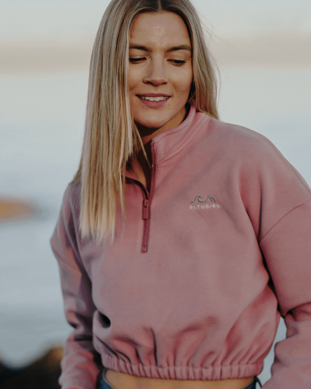Our new & improved cropped fleece is now 100% recycled. That's the fleece material, trims and the zips themselves.