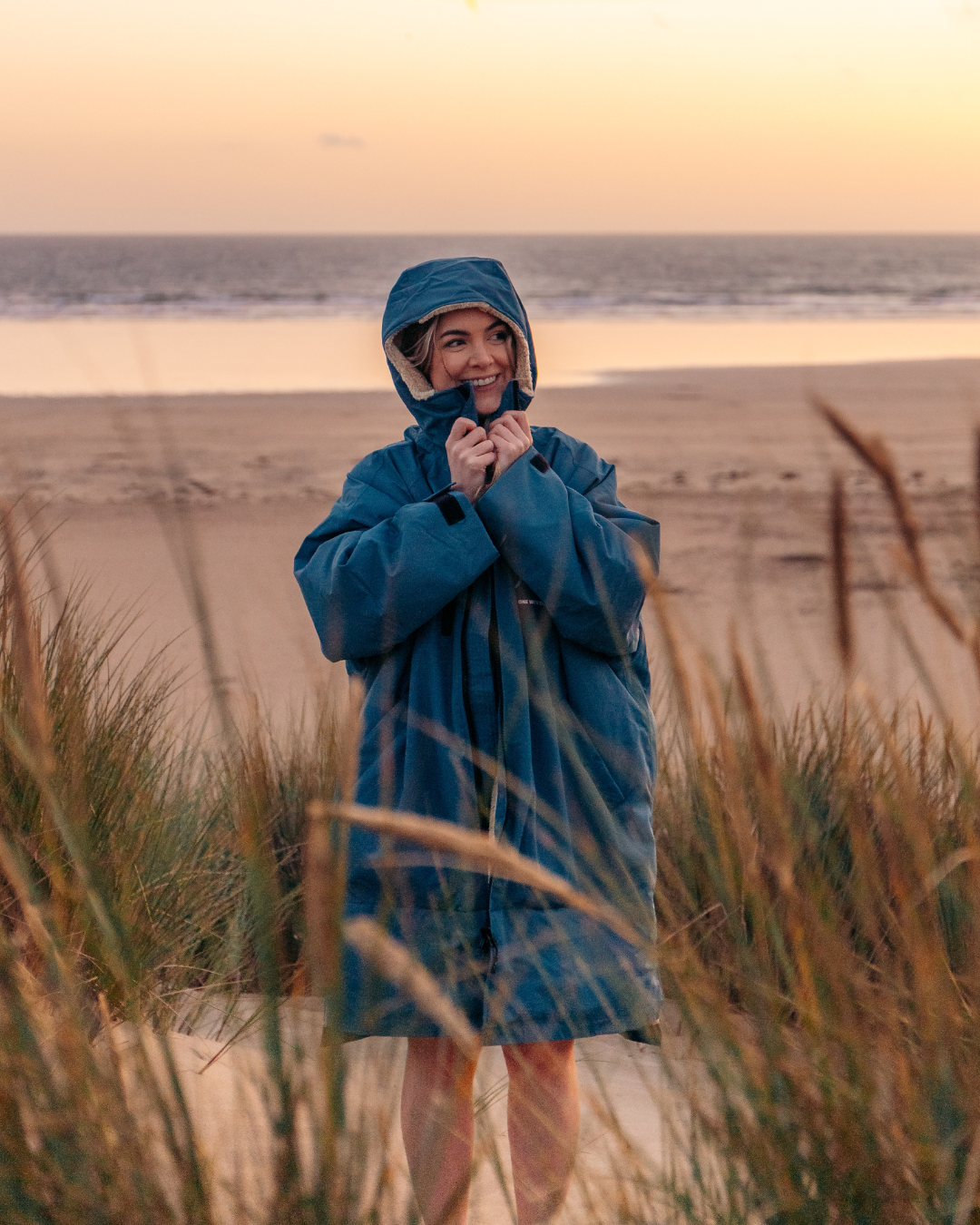 Our Nordic Robe is designed for embracing the elements and is destined to become an essential part of your adventure kit. Whether it's for changing out of your wetsuit after a surf, or for keeping you warm and sheltered before an early morning sea dip, the Nordic Robe has got you covered. We've worked hard to ensure this product is aligned with our environmental ethos. All the fabrics in the robe are made from 100% recycled plastic bottles. The external is treated with PFC-free water resistant coating. It's fully waterproof, with a 100% waterproof membrane lining, so you can stay out in the harshest of weather, and you'll still be kept dry, cosy and warm.
